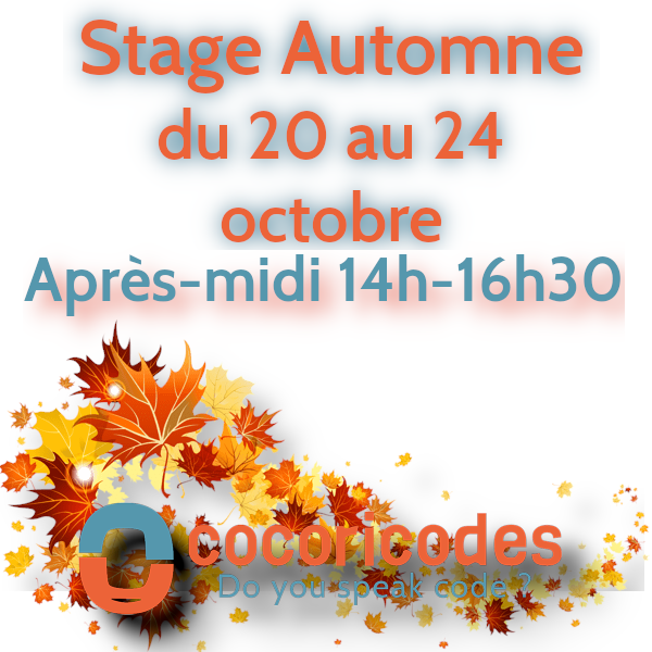 Cours de code informatique sous forme de stage du lundi 20 au vendredi 24 octobre.